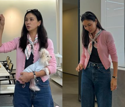 52세의 나이에도 여전한 미모를 자랑하는 배우 고소영 배우님. 최근 공유한 sns 속 그녀는 핑크색 가디건과 청바지를 매치하고 컬러풀한 스카프로 포인트를 주어 편안하면서도 힙한 데일리룩을 완성했습니다.
