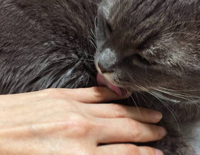 한편 집사 손에서 평소와 다른 냄새가 났을 때도 핥을 수 있습니다. 고양이는 영역동물로 자신의 영역 내에서 다른 낯선 냄새가 나는 것에 불안감을 느낍니다. 그 냄새를 지우고 자신의 냄새를 묻히기 위해 핥을 수 있습니다.