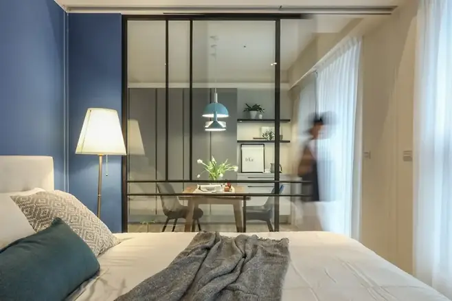 침실은 단순한 구조의 장점을 적극적으로 활용했다. 불투명 유리의 슬라이딩 도어를 설치해 일반 벽 대신 공간을 자연스럽게 구분하고 빛과 공기를 개방적으로 흐르게 만들었다.
