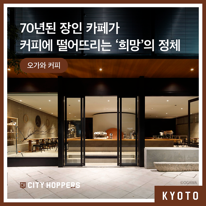 커피로 유명한 일본에서도 유독 커피의 도시로 불리는 곳이 교토예요. 일본 전국의 커피 소비량은 하루 평균 3.3잔인데 교토의 경우 4.9잔을 웃돌아요. 일본 내 도도부현 중 1위죠. 그만큼 경쟁도 치열하고요. 이러한 교토의 커피 씬에서도 유독 '장인 커피'로 정평이 난 커피숍이 있어요. 1952년 문을 연 오가와 커피(이하 오가와)예요.