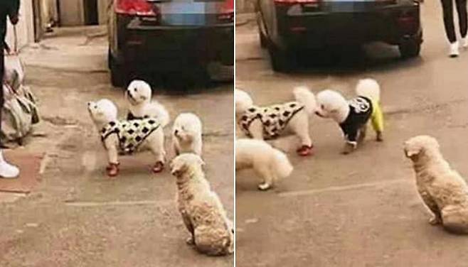공개된 사진 속에는 마치 다른 세상에 사는 듯한 두 부류의 강아지들이 있습니다.