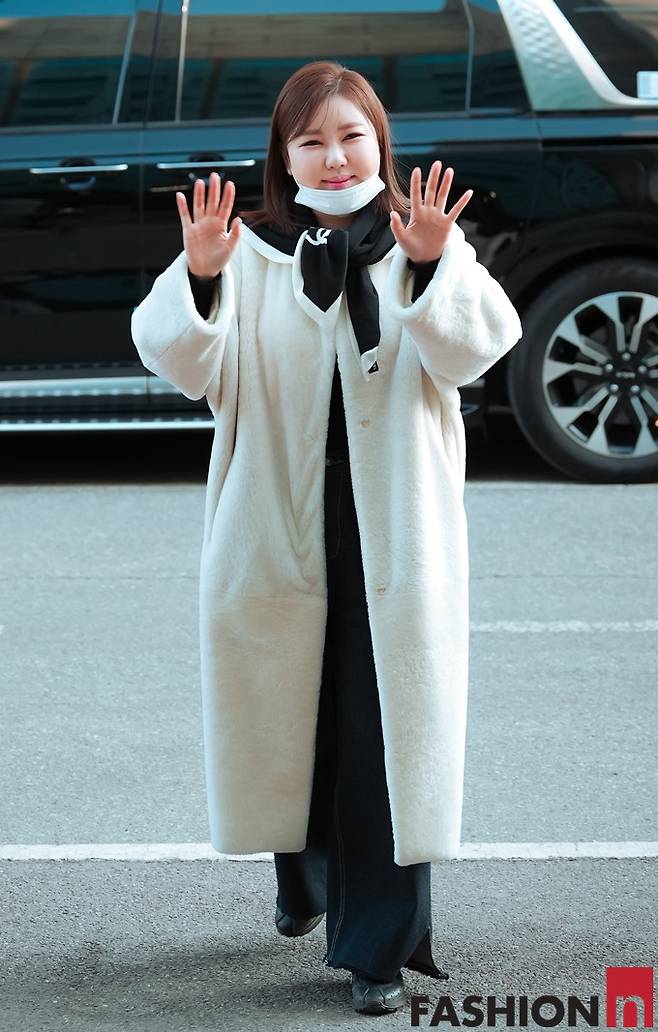 이날 송가인은 귀여운 포즈에 케이프 스카프와 화이트 롱 코트의 출근룩으로 러블리하면서도 귀여운 스타일로 눈길을 끌었다.
