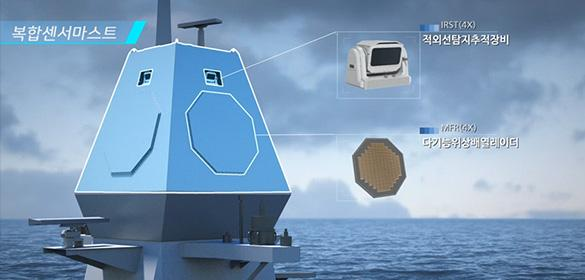이 마스트에는 4면 고정형 다기능 위상배열레이더와 적외선 탐지추적 장비가 통합되어 있으며, 스텔스형 설계까지 적용되었습니다.