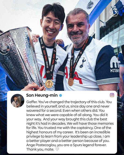 손흥민에게는 평생 잊지 못할 은사지만, 노팅엄에는 역사상 최악의 감독으로 남게 된 포스테코글루 감독이다. 그와 함께 생애 첫 우승에 성공한 손흥민은 "포스테코글루, 당신은 토트넘 홋스퍼의 영원한 전설이다. 고마워요, 친구"라며 행운을 빌어줬다.