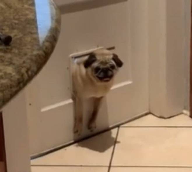 사연은 이렇습니다. SNS상에는 고양이 출입문으로 지나가려고 했다가 몸이 끼어버린 탓에 아등바등하는 강아지 모습이 공개가 된 것.