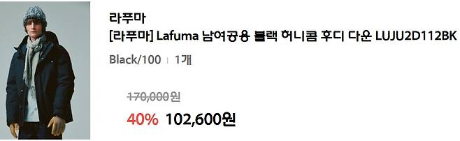 [온리하프][라푸마] Lafuma 남여공용 블랙 허니콤 후디 다운 LUJU2D112BK