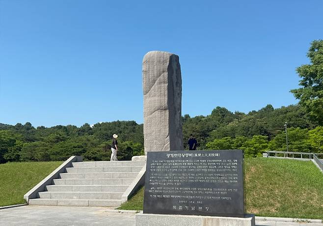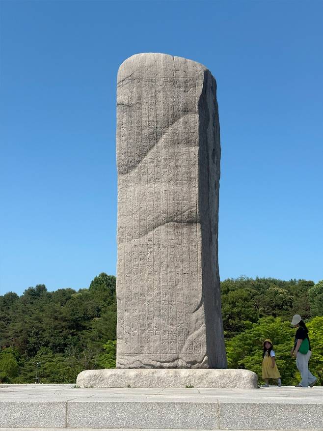 중국 지린성 지안시에 있는 광개토대왕릉비를 독립기념관 겨레의 한마당에 복원하여 2004년도에 세웠습니다. 동아시아에서 가장 큰 비석으로 높이 6.39m 무게 37톤의 화강암으로 만들어진 거대한 비석으로 기둥 4면에 1,775자의 고구려 건국 과정과 역사 그리고 광개토대왕의 업적을 연대순으로 기록하고 있습니다.