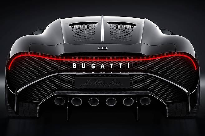 라 부아튀르 누아르는 부가티 시론의 기본 플랫폼을 기반으로 하지만, 모든 외장 패널은 기술자들에 의해 오직 수작업으로 제작되어 유려한 디자인을 완성했다. 차량의 전면과 후면에 적용된 독특하면서도 우아한 LED 전조등과 후미등은 그 독보적인 존재감을 더 부각한다.