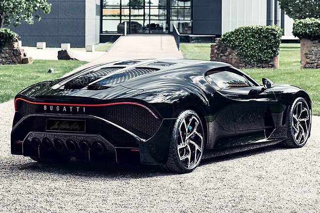 이름의 ‘라 부아튀르 누아르’는 프랑스어로 ‘검은 차’를 뜻한다. 이는 제 2차 세계대전 중 사라진 것으로 알려진, 창업주 에토레 부가티의 아들 장 부가티가 소유했던 모델인 전설적인 명차 ‘타입 57 SC 아틀란틱(Type 57 SC Atlantic)’의 불가사의한 역사에서 영감을 받았다. 단 4대만 생산된 타입 57 SC 아틀란틱 중 장 부가티의 것이라고 알려진 모델의 행방은 현재까지도 불명이기 때문에, 해당 차량은 ‘세상에서 가장 귀한 차’로 불리며 자동차 역사상으로도 수수께끼로 남아있다. 라 부아튀르 누아르는 바로 그 전설의 아틀란틱을 현대적으로 부활시킨 오마주 모델로, 이름과 디자인 모두에서 그 전설의 흔적을 담고 있다.