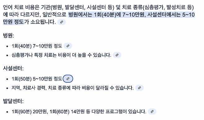 원래 언어치료 센터 다니면 엄청 고가임..