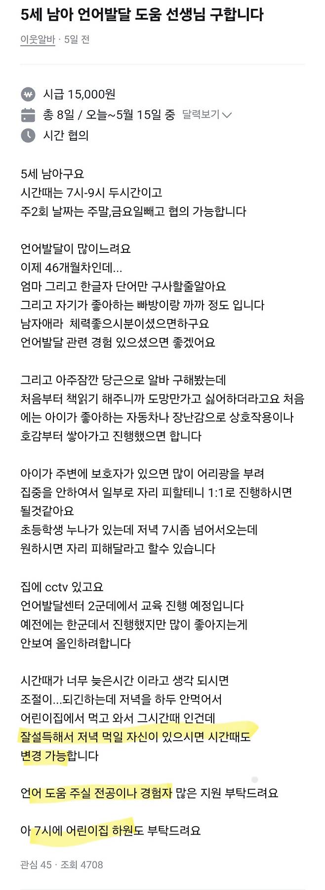 언어치료도 해 아이돌봄도 해 밥도 먹여 하원도 해...근데 시급이 15,000원