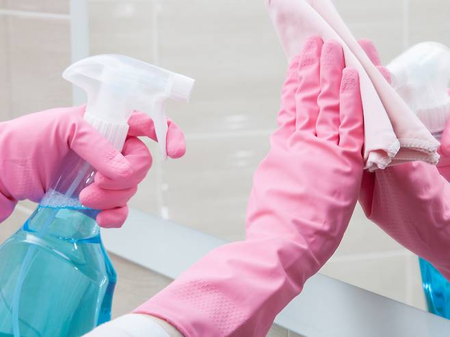 3. 희석한 세제를 분무기에 담아 유리에 분사한 뒤 마른 수건으로 닦아낸다.