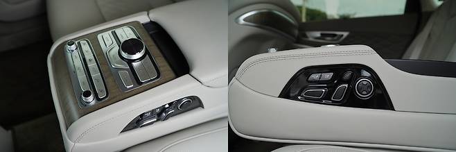 뒷좌석에도 편의성을 높이는 기능이 많았다. 상석인 조수석 뒤쪽에 앉을 회장님이 불편하지 않게 하려는 의도일 테다. 2열 가운데 공조 장치 조작 버튼이 있어 에어컨 바람 세기, 음악 크기 등 조절할 수 있다.