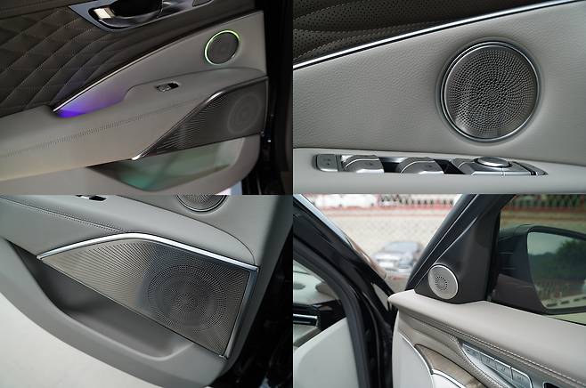 요즘 신형차에는 웬만한 고급 스피커가 내장돼있어서 K9도 어떨지 기대가 됐다. 아니나 다를까 심장을 때리는 소리가 인상적이었다. 소음을 차단하는 유리창 덕분인지 고요한 공간에서 음악을 감상할 수 있었다. K9에는 하만 계열사 렉시콘의 스피커가 장착돼있다. 뒷좌석에서도 소리가 풍부하게 들렸다. 지금까지 시승했던 여러 SUV 차량보다도 스피커 성능이 좋았다. 이 스피커를 달려면 추가금 138만원을 내야 한다. 마스터즈 베스트셀렉션 Ⅱ에서는 기본으로 포함돼있다.