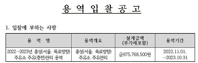 | ▲ 홍성 주유소 용역입찰 공고 |