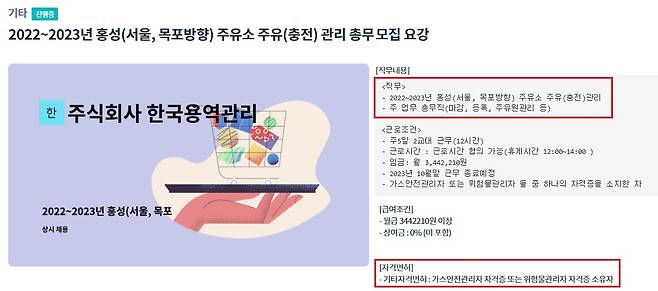 | ▲ 홍성 주유소 주유 관리 총무 모집 요강 |