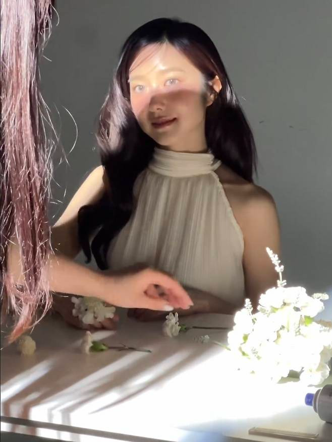 여기에 은은한 웨이브 헤어와 과하지 않은 내추럴 메이크업이 더해져 마치 영화 속 한 장면 같은 분위기를 연출했습니다.