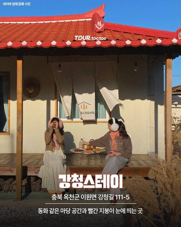 강청 스테이는 빨간 지붕과 넓은 마당이 인상적인 독채형 촌캉스 숙소입니다. 마치 동화 속 집처럼 아기자기한 분위기를 자랑하며, 야외 정원에서는 여유로운 산책도 즐길 수 있습니다.