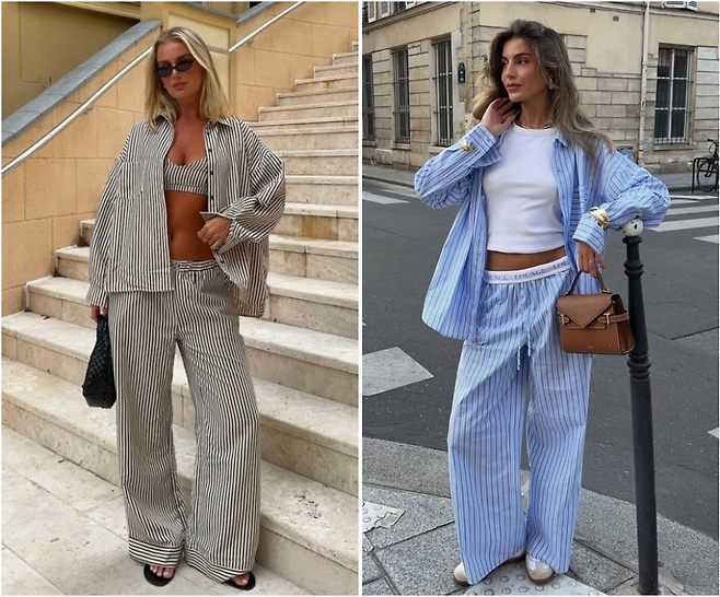 패턴 하의와 셔츠를 매치한 룩이에요.