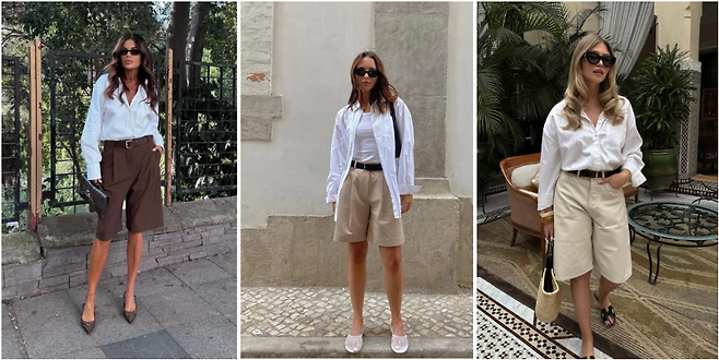 힙을 살짝 덮는 길이의 셔츠를 매치하면