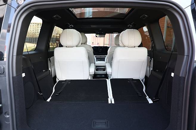 트렁크 용량은 535리터로 발표되었으나 체감 공간은 이보다 작게 느껴진다. 2열과 3열 시트를 모두 접으면 최대 2202리터까지 확장된다.