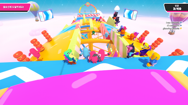 폴가이즈는 스테이지 경험이 승부에 상당한 영향을 줍니다. 물론 스테이지 시작 전에 로딩화면에서 약간의 설명을 해주고 있지만 글자 몇 줄이 전부입니다. 따라서 분명 스테이지 경험이 한번이라도 있는 유저는 처음 접하는 유저보다 반응에 유리할 수밖에 없습니다. 실전에서 직접 경험해야 하기 때문에 시행착오가 이어질 수 있습니다. 이 과정에서 폴가이즈에 대한 흥미를 잃을 가능성도 있지만 이 짧은 과정만 넘긴다면 폴가이즈의 재미에 푹 빠질 수 있습니다.