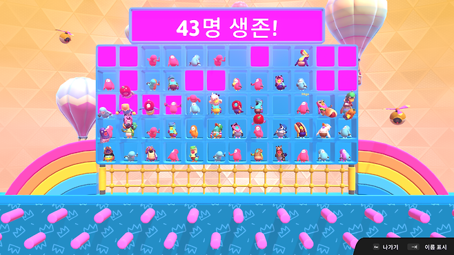 그런데 전체이용가 오징어 게임이 있습니다. 피는 한방울도 나오지 않고 귀여운 캐릭터들이 떼로 등장하지만 결코 녹녹치 않은 게임 바로 폴가이즈입니다.