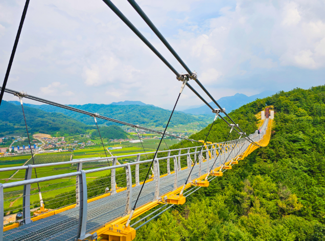 문경에 새롭게 자리 잡은 봉명산 출렁다리는 길이 160m, 높이 33m의 보행 현수교로, 스틸그레이팅과 투명 유리 바닥을 동시에 갖춘 독특한 다리입니다. 2023년 개통 이후 무료 입장과 무료 주차, 그리고 편리한 접근성 덕분에 문경의 인기 명소로 자리매김했지요.