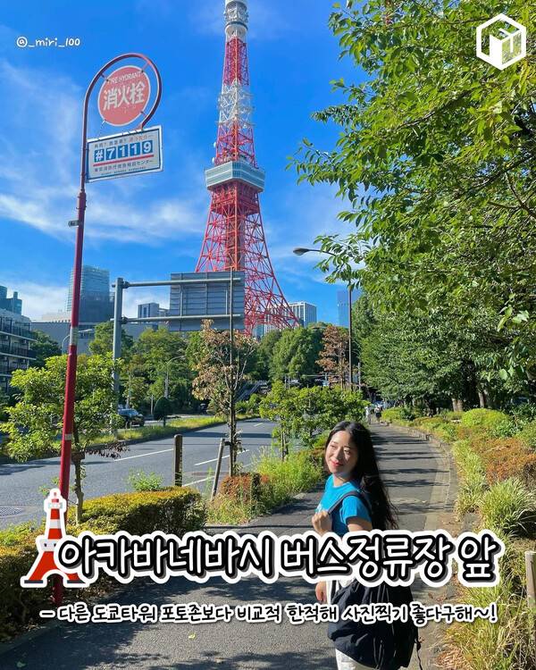 아카바네시 버스정류장 앞도 손꼽히는 도쿄타워 포존입니다. 이곳은 다른 도쿄타워 포토존보다 비교적 한적해 사진찍기 좋은데요. 도쿄타워와 버스정류장표지판까지 감성적인 도쿄타워 사진을 남겨보시길 바랍니다.