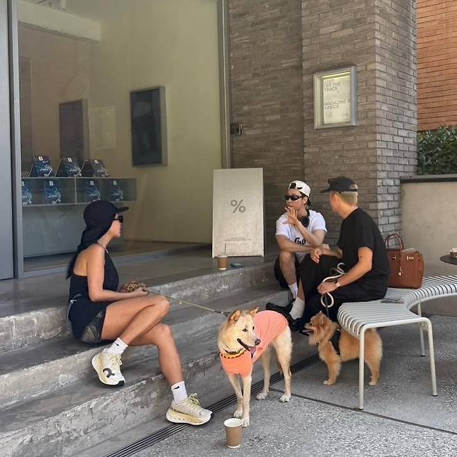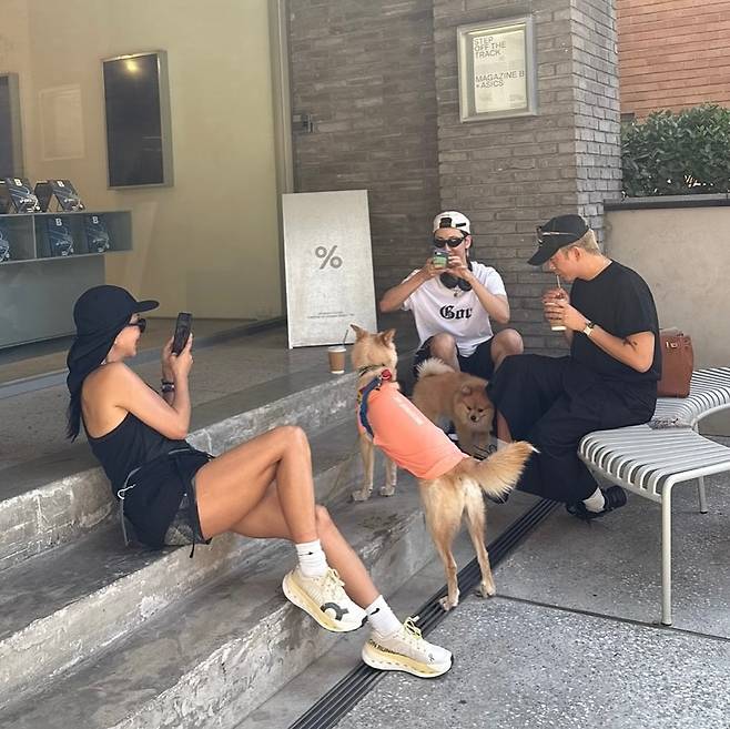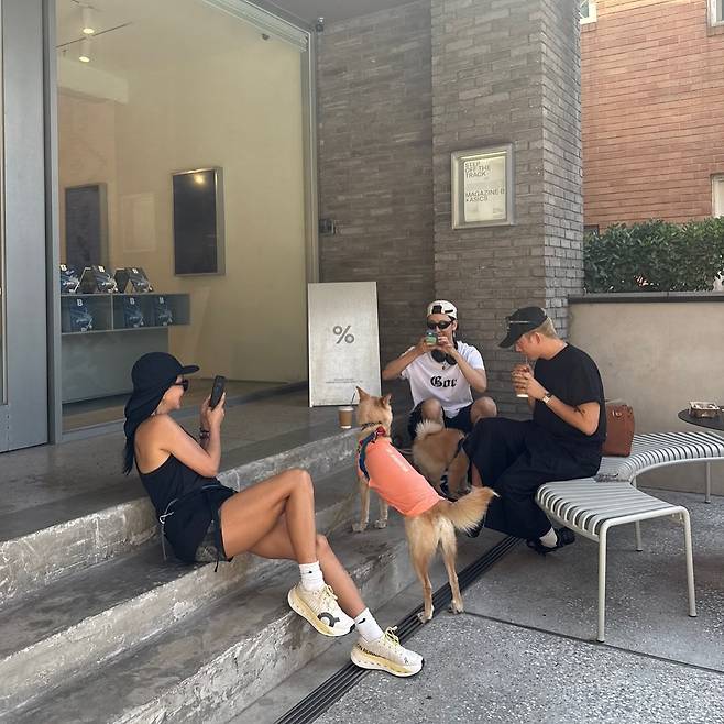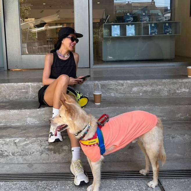 함께한 반려견도 컬러풀한 하네스와 옷으로 스타일링되어 있었는데, 이조차 그녀의 감각 안에 있다는 걸 느낄 수 있었어요.