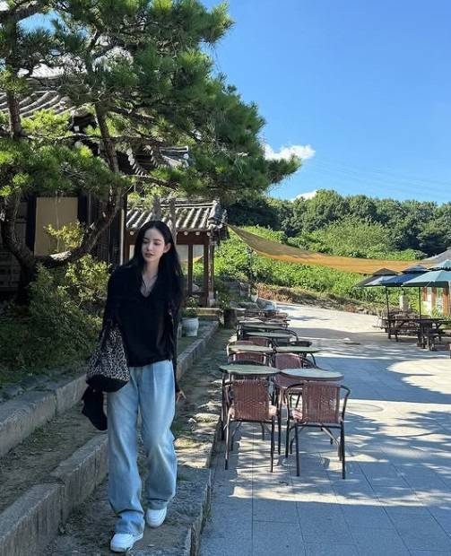 세미 부츠컷 데님이 라인을 강조해 줘요. 비율이 좋아 보이는 건 덤.