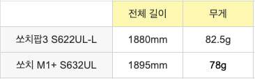 쏘치 M1+의 전체 블랭크 길이는