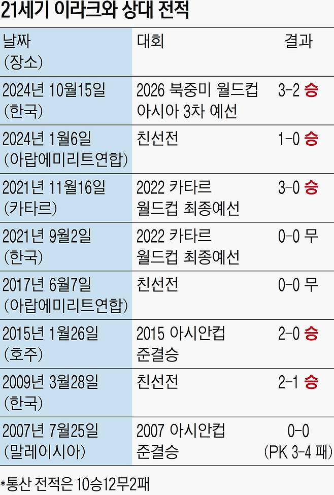 이라크와 역대 전적은 ‘절대 우위’