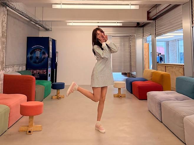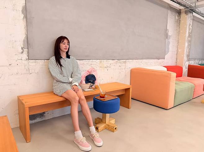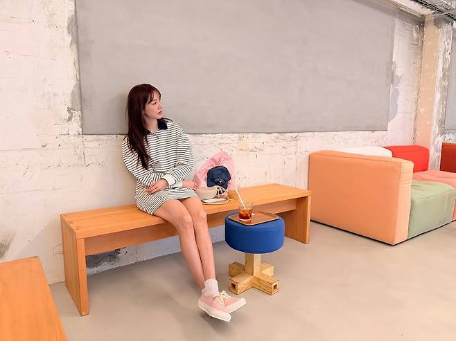 이날 윤은혜 패션은 편안하면서도 스타일리시했다. 그는 활동성이 좋은 스트라이프 미니 원피스와 스니커즈를 매치해 편안한 '카페 나들이룩'을 완성했다.