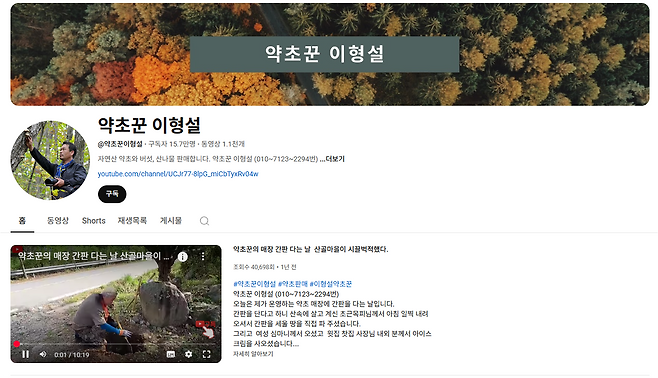 이형설 씨는 '약초꾼 이형설'이라는 유튜브 채널에서 자연과 함께하는 삶을 공유하고 있어요. 영상 속 그는 수십 년 된 약초를 캐고, 산을 오르고, 약초에 대한 이야기를 풀어놓으며 사람들에게 자연의 가치를 전해주고 있어요. 약초 이야기가 궁금한 분들은 유튜브 영상도 시청해보세요!