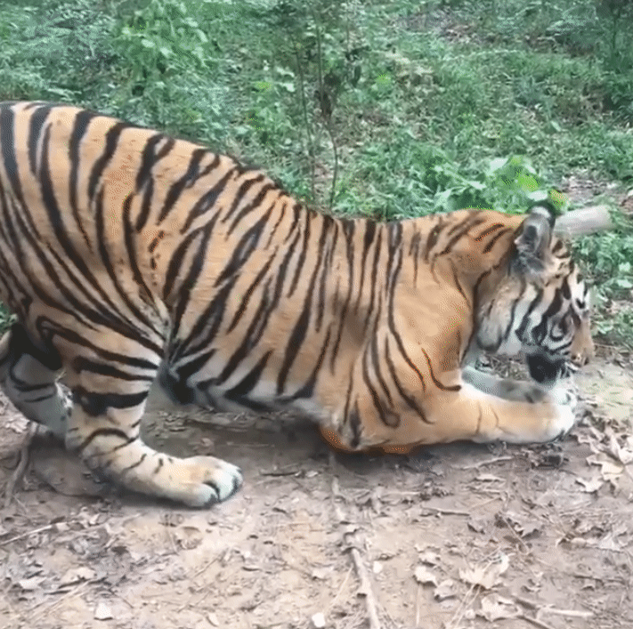 마치 애착 인형을 꼬옥 끌어안는 고양이처럼 갑자기 호랑이가 귀여워 보이는데요.