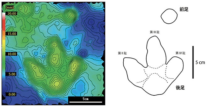 일본 후쿠이현립공룡박물관(FPDM)은 15일 공식 채널을 통해 같은 현 카츠야마시 키타다니초 백악기 전기(약 1억2000만년 전) 지층에서 발굴된 이구아노돈 류 공룡 새끼 발자국 화석을 소개했다.
