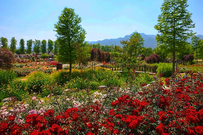 75,000㎡의 대형 장미 정원에 심어진 1,004종의 유럽산 희귀 장미들은 다른 어디서도 쉽게 볼 수 없는 장관을 연출한다.