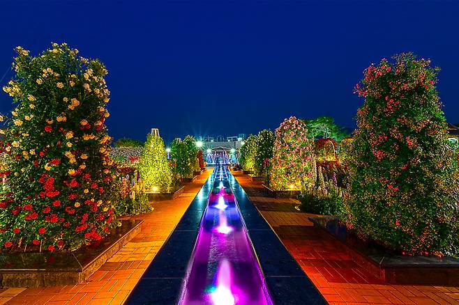 조명에 비친 장미들은 마치 꿈속에서나 볼 법한 장관을 선사한다.