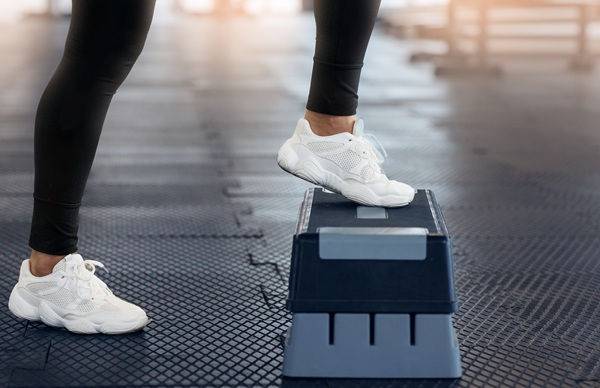 스텝박스나 단단한 도구 앞에 서서 준비합니다. 오른발을 스텝박스 위에 올리고, 이어서 왼발을 올립니다. 오른발을 먼저 내리고, 왼발을 내려 원래 자세로 돌아옵니다. 이번에는 왼발을 올리고, 이어서 오른발을 올립니다.