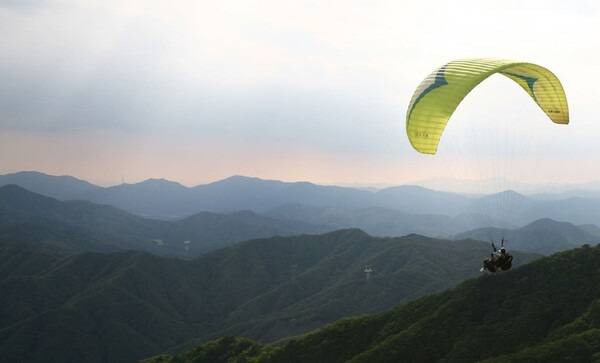 양평에는 전국 최고 고도의 패러글라이딩장이 모여있는 명소인데요. 특히 유명산은 가장 긴 체공시간을 가진 패러글라이딩장으로도 굉장히 유명합니다. 주변에 산들도 많아, 내 발아래 산들을 내려다 두는 경험을 하실 수 있는데요.