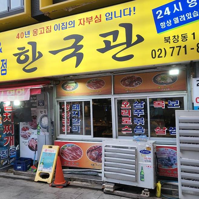 시청역 근처 40년째 김치찌개를 고집하는 곳이다. 간판에 ‘40년 옹고집이 자부심’이라 쓴 걸 보면 더욱 믿음이 갈 것. 이곳은 김치찌개 종류만 6개인데 기본 김치찌개에도 돼지 생고기가 푸짐하게 들어가 배부르게 먹을 수 있다. 여기에 한국관의 자랑인 꼬들꼬들한 돌솥밥까지 곁들이면 게임 끝. 돼지고기, 햄, 쭈꾸미가 모두 들어가는 종합 김치찌개도 맛볼 수 있으니 뭘 먹어야 할지 고민 될 때 선택하면 되겠다. 브레이크 타임을 제외하고는 24시간 운영하니 언제든 방문해서 든든한 한 끼 먹고 가자.
