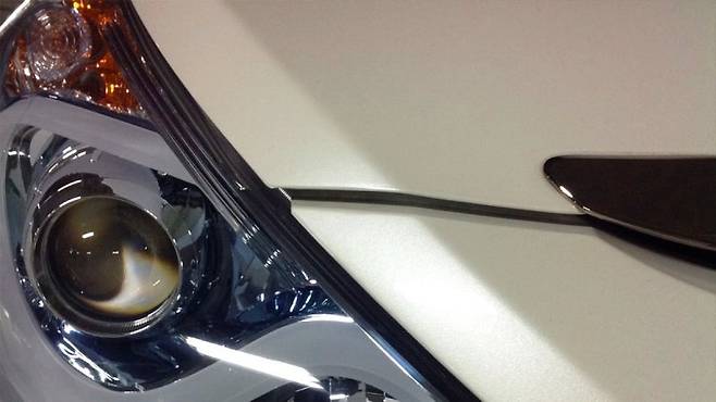 차량의 외관을 이루는 패널들 사이의 미세한 단차(段差) 또한 풍절음의 주범이 될 수 있습니다. 특히 보닛과 앞 펜더 사이의 틈이 육안으로 보일 정도로 크거나, 과거 사고 수리 이후 패널들의 정렬이 미세하게 어긋난 경우에는 공기 유입이 집중되어 강한 와류를 생성하고, 이것이 그대로 풍절음으로 이어질 수 있습니다.