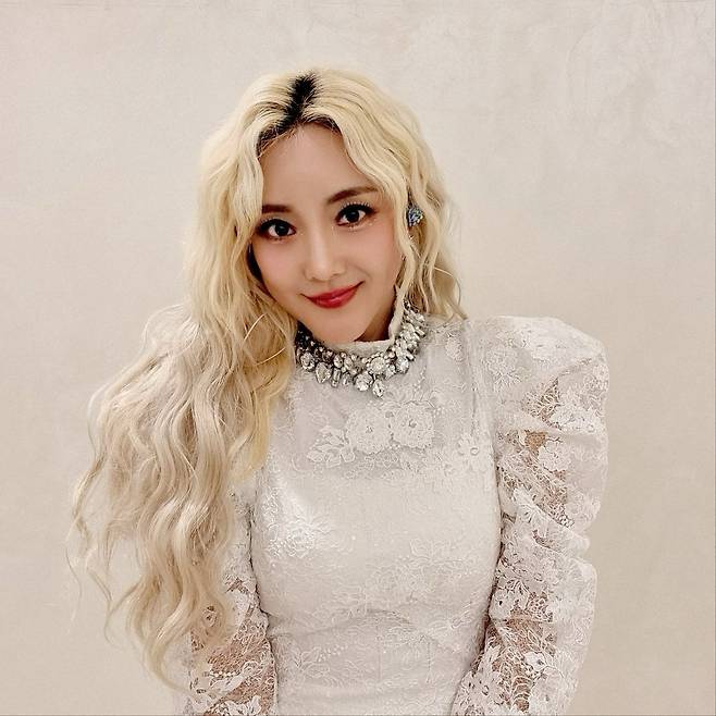 마지막 스타일에서 바다는 화이트 레이스 드레스와 화려한 주얼리로 고급스러운 이미지를 선보이고 있다. 퍼프 소매 디테일이 돋보이는 레이스 드레스는 클래식한 우아함을 자아내며, 목에 착용한 크리스털 초커는 드레스의 고급스러움을 한층 더 높여준다. 웨이브 진 금발 헤어스타일과 붉은 립 메이크업은 전체적인 룩에 화사함을 더하며, 바다의 화려한 무대 위 모습을 연상케 한다.