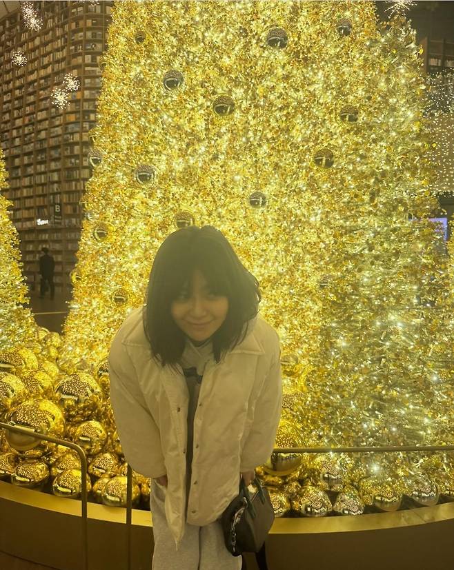 이영은은 밝은 화이트 컬러의 오버사이즈 롱패딩을 착용해 스타일리시하면서도 따뜻함을 강조했습니다.