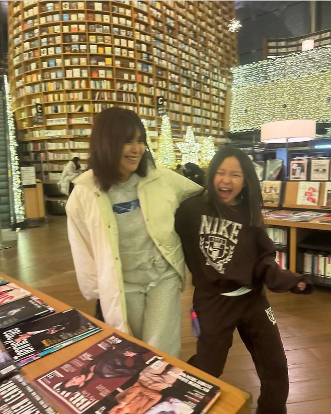 회색 후드티와 트레이닝 팬츠를 매치한 이영은은 캐주얼한 분위기를 연출하며, 편안한 실내 나들이룩을 선보였습니다.