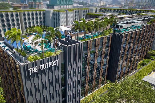 싱가포르 센토사섬에 있는 '더 아웃포스트 호텔 센토사'는 싱가포르 해협을 내려다보는 언덕 위에 자리 잡은 성인 전용 호텔입니다.