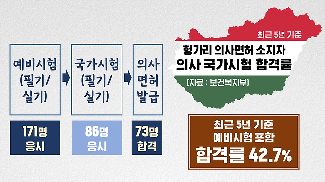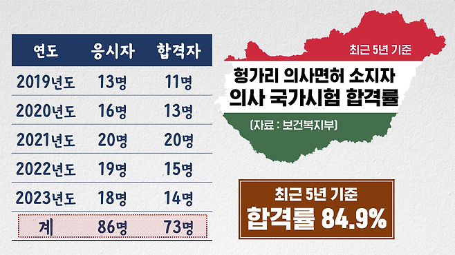 헝가리를 포함해 외국 의대 출신 전체로 보면, 합격률은 더 낮아진다는 게 보건복지부의 설명입니다.