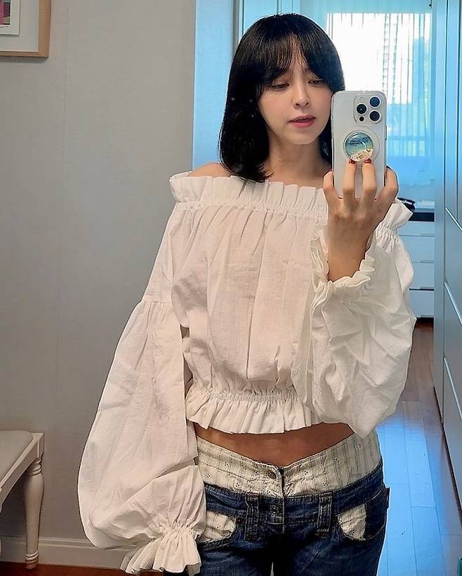 허리를 과감하게 드러낸 크롭 길이와 밴딩 디테일은 복고풍이지만 세련된 인상을 더했고, 군살 없는 복부 라인과 자연스러운 셀카 포즈는 자신감 있는 패션 감각을 엿보게 했습니다.