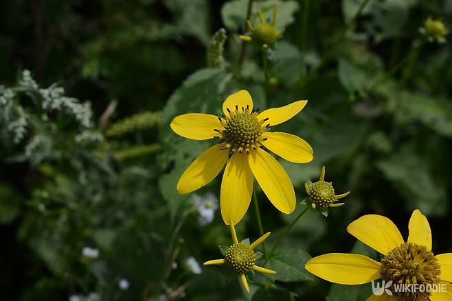 이 나물은 북아메리카가 원산지다. 영어 이름은 골든 글로(Golden glow)로 불린다. 국내에선 꽃이 예뻐서 꽃나물이라 부르기도 하고, 키가 커서 키다리나물이라는 별명도 있다. 옛 어르신들 중에는 집에 한두 포기 심어두고 봄엔 잎을 따 먹고 여름엔 꽃을 감상하던 기억을 가진 이들도 있다.